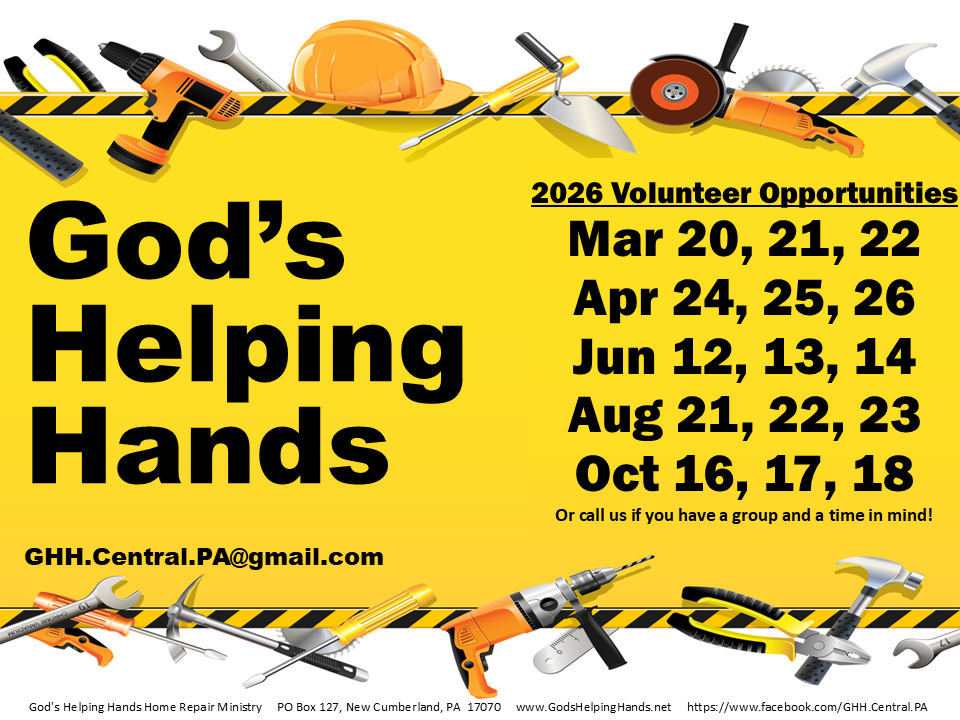 God’s Helping Hands has multiple Work Weekend opportunities throughout 2026. Volunteers are welcome to join for part of a day, a whole day, 2 days, or all 3 days of the Work Weekend.